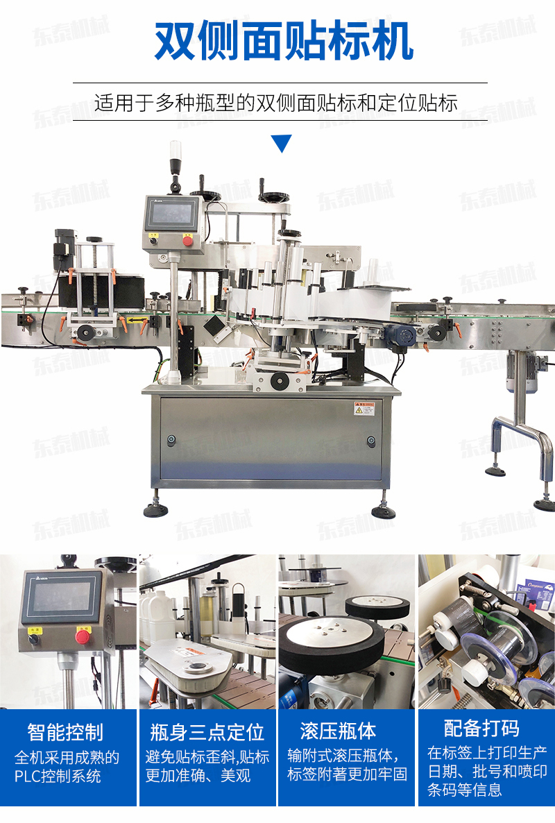 全機采用的技術(shù),微電腦-PLC-電子光纖傳感器控制系統(tǒng),使整機運行穩(wěn)定、高速; 操作系統(tǒng)采用操作界面控制,操作簡便、實用、效率高,并有產(chǎn)量記數(shù)功能; 技術(shù)的速度快且穩(wěn)定; 適用范圍大,可用于各種尺寸的圓形瓶貼標; 輸附式滾壓瓶體,使標簽附著更加牢固; 前后段可選連線使用。