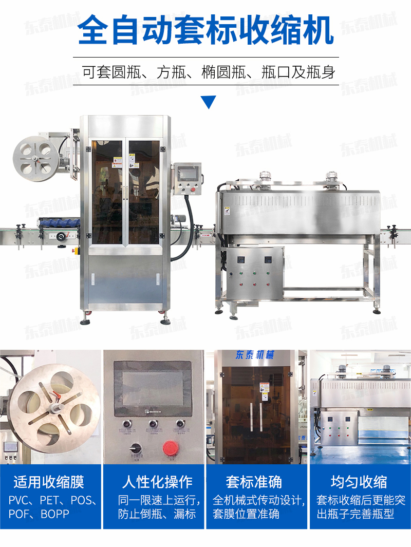 1. 本公司生產(chǎn)的套標機適用于各種瓶型的果汁、茶飲料、乳制品、純凈水、調(diào)味品、啤酒、運動飲料等食品飲料行業(yè)、不但套標位置度高,且收縮后更能突出瓶子完善瓶型。
