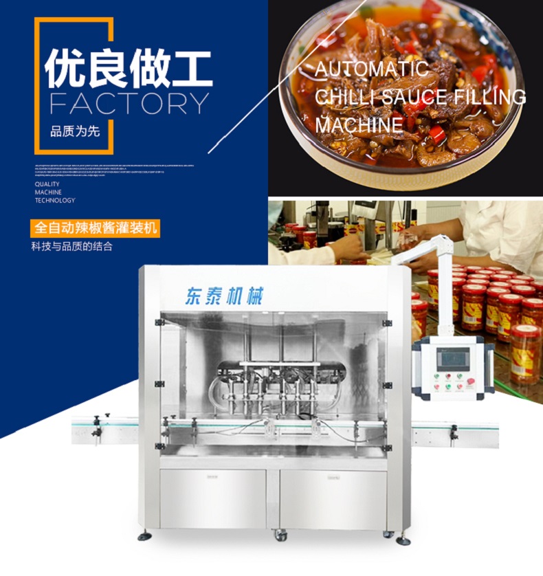 全自動辣椒醬類醬體灌裝生產(chǎn)線作為公司新研發(fā)的灌裝設(shè)備在市場上起到了關(guān)鍵性的作用,獨特的技術(shù)讓整個包裝市場變得富有生命力,是集光,機(jī),電,氣于一體,采用活塞式定量原理,灌裝精度高,操作簡單,維護(hù)方便,設(shè)備主要材質(zhì):采用SUS304不銹鋼制造,符合衛(wèi)生要求.灌裝過程采用亞克力透明板與外界隔離,保證灌裝的衛(wèi)生要求。灌裝采用壓力式灌裝,無需配裝高位罐,簡化了安裝工序,提高了灌裝效率。可廣泛應(yīng)用于食品、醬料行業(yè)產(chǎn)品的自動化包裝生產(chǎn)。幾乎能夠灌裝所有醬類、醬料物體是該款全自動辣椒醬類醬體灌裝生產(chǎn)線最大的優(yōu)勢,包括大塊肉醬、顆粒醬、濃醬、豆瓣醬、甜面醬、辣椒醬等。