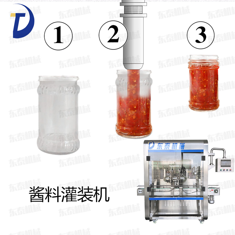 灌裝機采用活塞式灌裝原理,適用于調(diào)味品中帶顆粒并且濃度較大的辣椒醬、豆瓣醬、花生醬、香菇醬、果醬、牛油火鍋底料、紅油火鍋底料、蝦醬等較為粘稠醬類的灌裝。