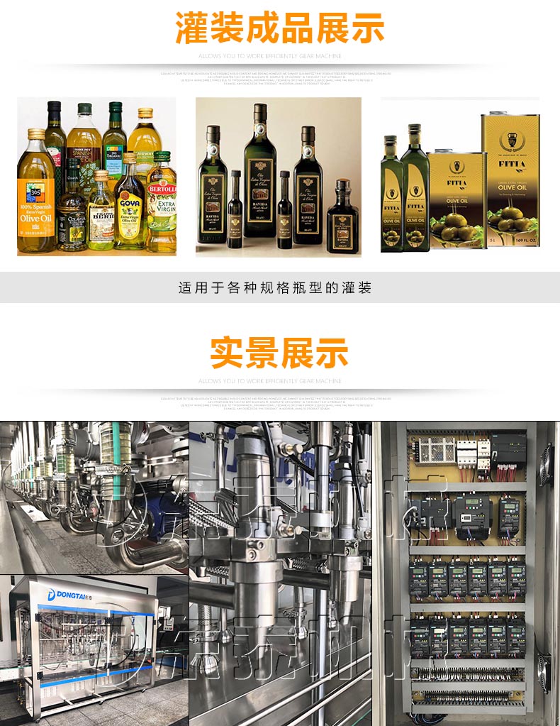 食用油灌裝生產(chǎn)線采用流量計(jì)式計(jì)量灌裝原理,多項(xiàng)認(rèn)證,適用于各種規(guī)格(1-5升)的南瓜籽油、榛子油、牡丹籽油、芝麻油、核桃油、山茶油、亞麻籽油、棉籽油、橄欖油、大豆油、玉米油、菜籽油等食用油灌裝。設(shè)備采用高精的旋轉(zhuǎn)編碼器計(jì)量,保證了1%o的灌裝精度,在保證灌裝精度的同時(shí),提高了20%-35%的灌裝速度,操作簡單,維護(hù)方便,節(jié)省人工成本,生產(chǎn)效率更高。